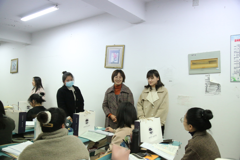 为了缓解考研学子备考压力,坚定必胜信念,以积极乐观的心态迎接挑战,近日我院开展考研慰问活动,为考研学子送上冬日的温暖。人文学院党委副书记姜杨慧、全体辅导员以及毕业班班主任代表一行,前往考研自习室看望2022届考研学子,并送上精心准备的考研暖心福袋。