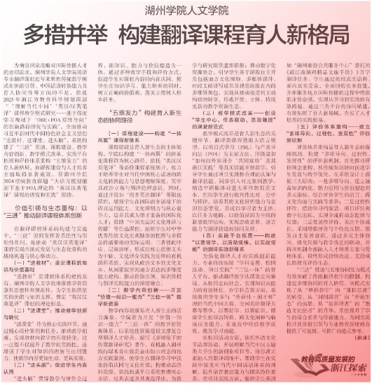 近日,我院赵冰老师的教学研究文章《多措并举 构建翻译课程育人新格局》一文在《中国教育报》刊发,标志着我院教师在翻译课程教学理论研究与实践探索方面达到了新的水平。