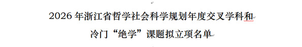 近日,2026年浙江省哲学社会科学规划年度重大课题、常规课题、交叉学科和冷门“绝学”课题拟立项名单正式公布,我院两位教师申报的课题成功入选。其中,高明老师主持的《汉长安城未央宫骨签文字研究》获批浙江省哲学社会科学规划年度交叉学科和冷门“绝学”课题重点立项;郑伟老师主持的《个体性与共同体在文艺复兴时期英国文学中的调适模式研究》获批浙江省哲学社会科学规划年度常规课题一般立项。