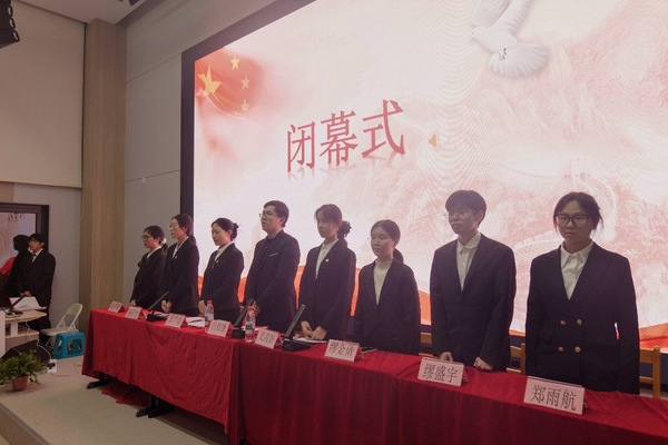 大会表决通过关于学生会工作报告的决议,吕佶康老师致闭幕词。全体起立奏唱《光荣啊,中国共青团》后,湖州学院人文学院第五次学生代表大会胜利闭幕。