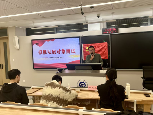 为严格落实党员发展工作要求,切实把好党员入口关,选拔出政治素质过硬、综合表现优秀的入党积极分子作为党的发展对象,2025年10月23日晚,人文学院学生第一党支部组织开展拟推发展对象面试工作。本次面试由支部书记葛玮主持,全体支部党员参加此次活动。