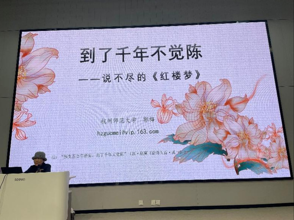 2025年11月12日下午,杭州师范大学郭梅教授应邀在4号楼102会议室,为我院汉语言文学专业学生带来了一场题为“到了千年不觉陈——说不尽的《红楼梦》”讲座。本次讲座由何英教授主持,160余名师生参加。