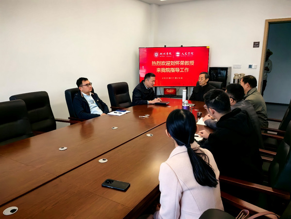 11月26日,中国海洋大学中国传统文化研究中心主任刘怀荣教授应邀莅临人文学院指导交流。院长秦跃宇、王海涛教授与教师代表参与座谈。