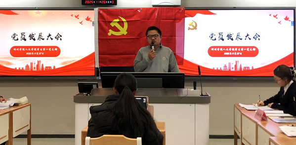 为进一步增强支部的战斗堡垒作用,为党组织输送新鲜血液,2025年11月26日下午,人文学院学生第一党支部召开党员发展大会。支部委员、全体党员参加此次会议,会议由支部书记葛玮主持。