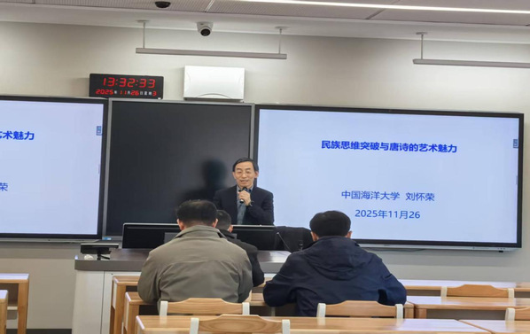 11月26日下午,中国海洋大学刘怀荣教授莅临我院,为师生带来题为“民族思维突破与唐诗的艺术魅力”学术讲座,本次讲座由人文学院院长秦跃宇主持。
