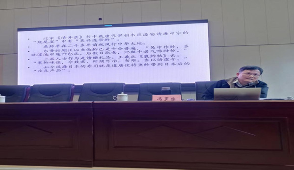12月3日下午,人文学院“湖学大讲堂”系列讲座特邀原湖州市商务局退休专家冯罗宗,以“在湖州美食中品出文化的味道”为题,带领师生探寻美食背后深厚的历史文脉与地域精神。
