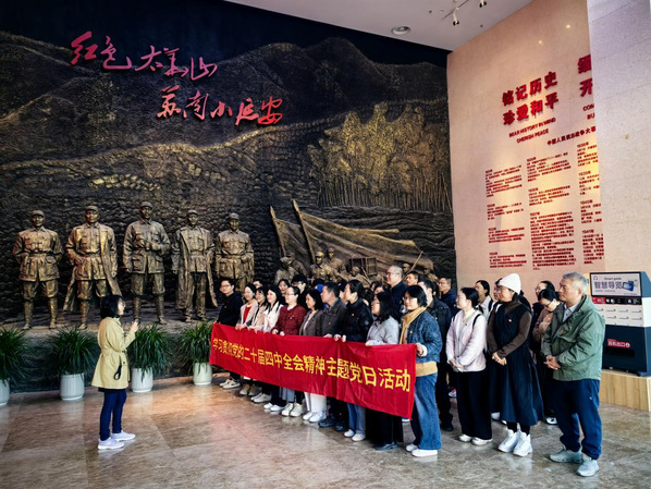 为深入学习贯彻党的二十届四中全会精神,12月6日,人文学院党委组织全体党员教师赴“苏南小延安”——太华山新四军和苏南抗日根据地纪念馆,开展“学习贯彻党的二十届四中全会精神”主题党日活动。 校党委委员、副校长沈月娣全程参与并讲授专题党课。