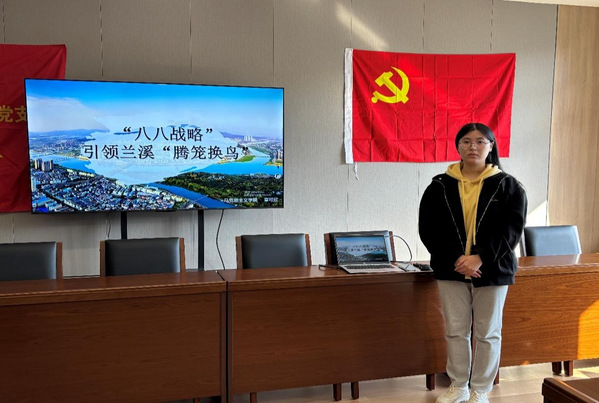 2025年11月27日,为深入学习践行“八八战略”,从地方高质量发展实践中汲取经验、凝聚力量,人文学院学生第二党支部以专题党日活动为载体,在2-417组织全体党员聚焦兰溪“腾笼换鸟”产业转型实践,开展了一场沉浸式的学习活动。本次活动特邀马克思主义学院理论宣讲员章可欣宣讲。