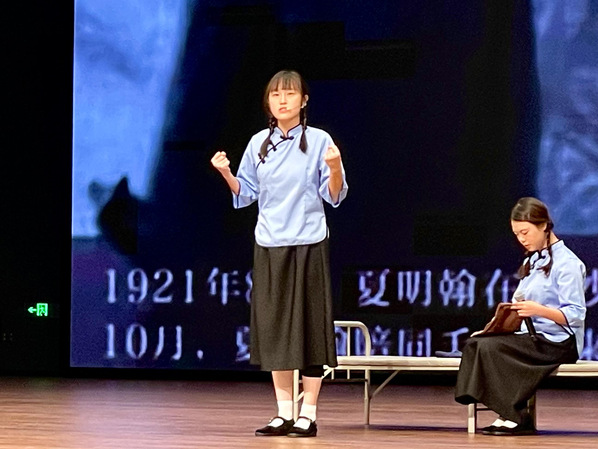 在比赛舞台上,人文学院代表队以“铁血柔情夏明翰”为主题,深情演绎了革命烈士夏明翰的三封绝笔家书。表演别出心裁,几名表演者分别化身夏明翰生命中三位重要的女性角色:大姐夏明玮、妻子郑家钧和母亲陈云凤。通过“大姐”的疼惜与理解、“妻子”的坚贞与不舍、“母亲”的悲痛与骄傲三段独白式诵读,以层层递进的演绎方式,深刻剖白出夏明翰就义前丰富而壮烈的内心世界。