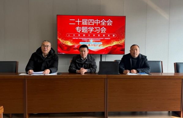 为深入学习贯彻党的二十届四中全会精神,强化文学系全体党员的理论武装与使命担当,12月17日下午,人文学院文学系党支部召开党的二十届四中全会精神专题学习会。