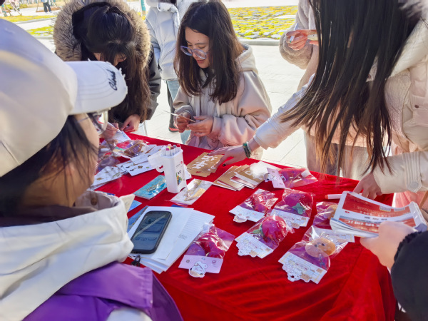 “文汇腾锋站”以书籍与明信片为载体,开展爱心传递活动。在“旧书换物”区域,同学们捐赠闲置书籍,换取精美礼品,所募图书将后续捐赠至有需要的人群。“明信片爱心传递”环节中,同学们通过书写对雷锋精神的感悟或祝福,以文字传递善意。一册旧书、一张卡片,皆是善意的接力,让雷锋精神在方寸之间悄然流淌。