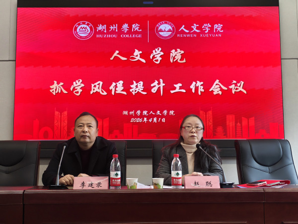 为扎实推进学校迎评促建工作,强化学风建设,提升学生素养,2026年4月1日下午,人文学院在2号楼103会议室召开“抓学风、促提升”工作会议。人文学院党委委员、副院长李建录,党委副书记、纪委书记赵聪出席会议,学工办副主任葛玮、全体辅导员及各班班长、副班长参会,会议由赵聪主持。